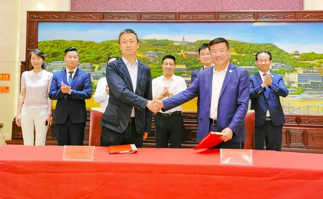 高新区党工委委员、管委会主任孙裕与明德集团董事长刘德明正式签订战略合作协议。