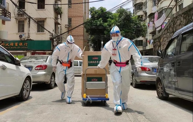 鹤园小区面积达1.2平方千米,常住人口较多,每次送餐数量超5000份,战疫先锋队需保证居民的一日三餐。送餐任务难在数量多、区域广,如何才能确保居民尽快接收到餐食?这是战疫先锋队一直在思考的问题。