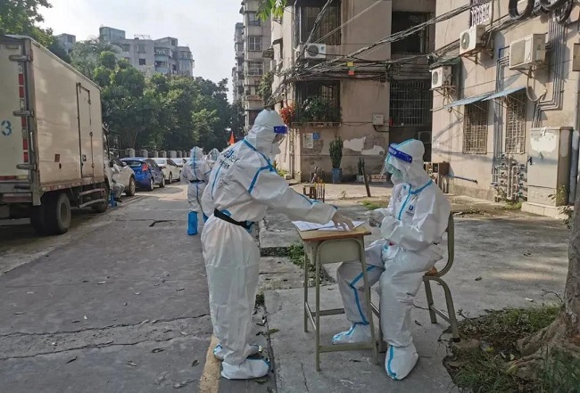 除了身在荔湾区白鹤洞街的一线战疫先锋队,公司还有一支外联组在场外共同奋斗。由于部分老人不擅长使用电子设备,鹤园小区内的队员们就一户一户去敲门,登记情况,最终形成名单交由外联组每天跟踪对接。