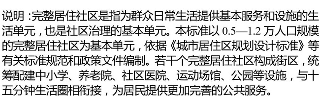 对照《完整居住社区建设标准(试行)》,结合实际,可进一步细化完善居住社区基本公共服务设施、便民商业服务设施、市政配套基础设施和公共活动空间建设内容和形式。