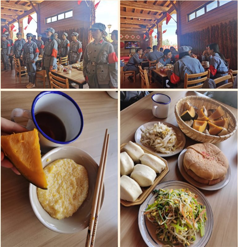 小米粥、蒸南瓜、馒头咸菜、面巴巴……在齐声歌唱《没有共产党就没有新中国》后,一餐独特的忆苦思甜“红军饭”,让我们更加深刻的感受到了那个生活物资匮乏,饮食条件艰苦的年代;更加深刻的感受到了建党百年来其中的辛苦与艰辛;更加珍惜当下革命先烈为我们开拓的美好时代!