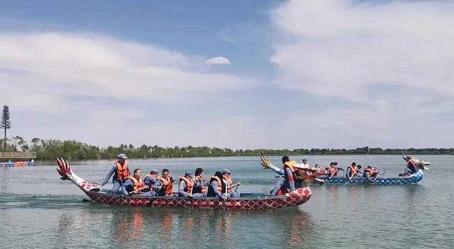 百年红船中国梦,百舸争流爱国志。激情洋溢的水上运动一起奏响党百年华诞的乐章!力宝龙舟战队戮力同心,跃浪争先,一起乘风破浪,敢拼敢闯。激烈的追逐,不仅展示了龙队的风采、龙舟的速度与激情,更是对龙舟精神,“红船精神”的继承与发扬。