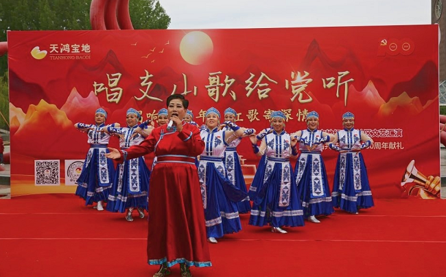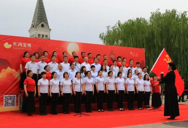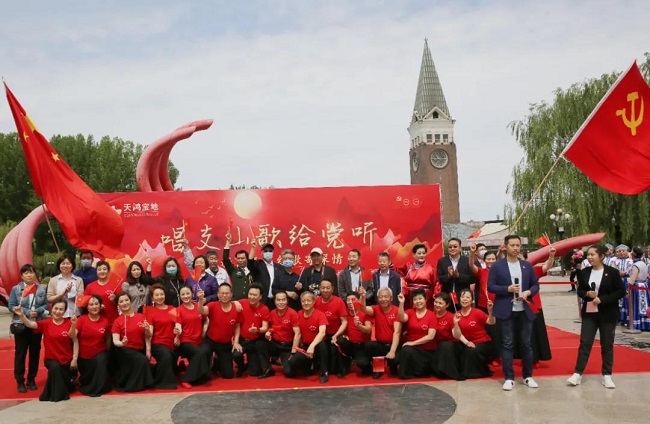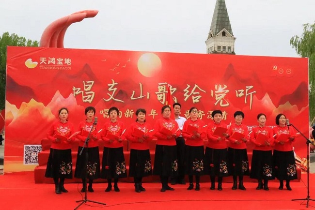 5月16日上午,天鸿宝地喜迎建党100周年 “唱支山歌给党听——唱响新百年 红歌寄深情”红五月社区文艺汇演活动在回龙园公园隆重举行。