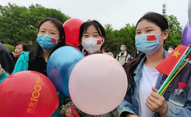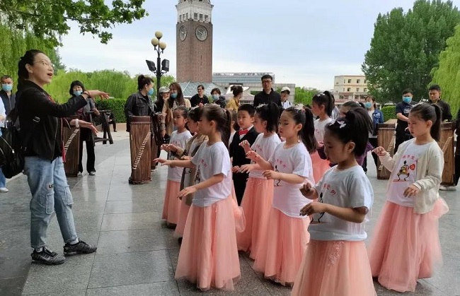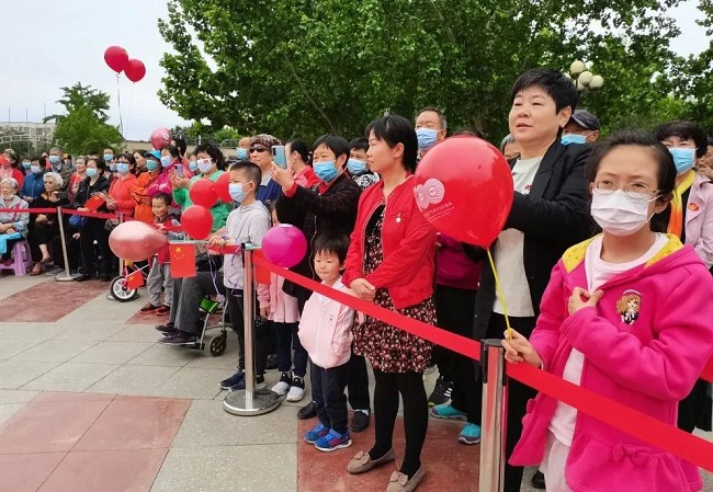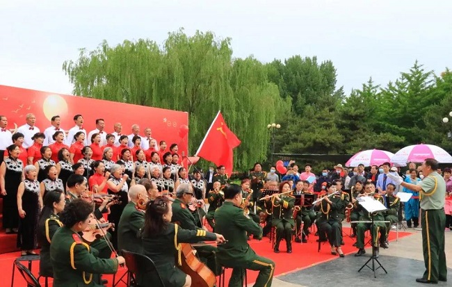 活动现场,特意前来观看演出的居民和临时得知有演出活动的游客络绎不绝,在拿到工作人员精心准备的小国旗、带有庆祝建党主题的小贴纸和气球后,满怀对祖国、对党的热爱与崇敬之情,认真而喜悦地观看了整场演出。