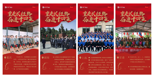 而在线上,保利物业全国党支部还发起了“线上集结”活动,各支部通过发出“响应海报”,展示当地的长征故事、革命故事,以及保利物业星火精神,在互联网平台上形成了致敬红色历史,表达昂扬斗志的积极氛围。