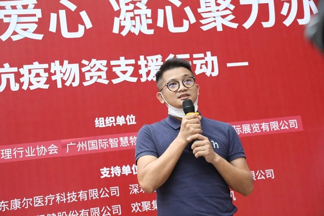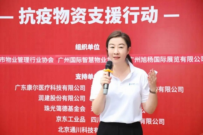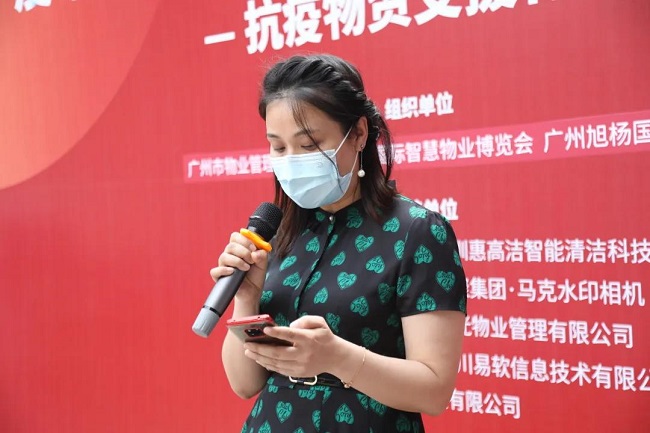 旭杨国际总经理夏凌旭发言表示:在这场没有硝烟的战中,社区物业作为第一道防线,扮演着重要的角色。我们充分联动各展商企业、物业上下游各大企业,希望为疫情抗战一线提供一定的物资保障和精神动力。