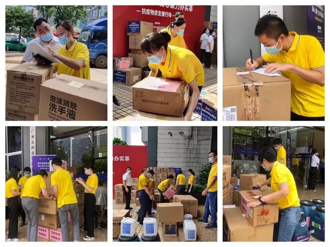 本次支援行动得到各大企业的积极响应,润建股份、惠高洁智能清洁、珠光物业、康尔医疗、欢聚集团·马克水印相机、京东工业品、易软信息、通川科技等爱心企业,共筹集支援了医用口罩30300个、隔离衣500件、医用防护服390件、防护手套2500只、消毒粉1000斤、消毒液404斤、手动泡沫洗手液液机20台、抑菌泡沫洗手液3024斤、免洗手消毒凝胶200升、免洗洗手液100瓶、立式消毒支架20套、测温枪20把、防护面罩120片、隔离眼罩80副、凉茶饮品4800支、矿泉水4800支等抗疫物资。