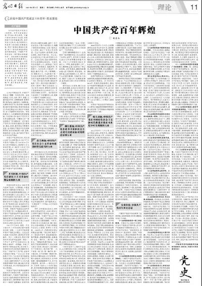 近期,《光明日报》刊发中共中央党史和文献研究院院长、研究员,中国中共党史学会会长曲青山《中国共产党百年辉煌》一文,全文如下: