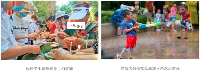 一边是氛围高涨的红色知识竞赛,一边则是欢声笑语不断的包粽子比赛、蛋体彩绘,部分项目还增添了香包手作、五彩绳祈福、水枪大战、儿童运动会、多肉种植等活动,精彩纷呈的文化活动进一步筑造了客户的参与感、获得感,不断满足业主对美好生活的向往,提升着幸福指数。