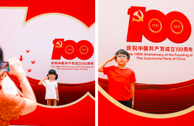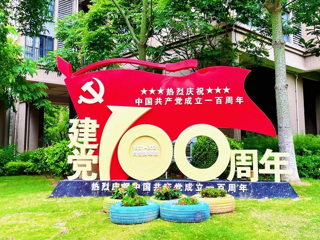 同时打造红色归家路线,移步易景,设计庆祝建党100周年造景和红色打卡点,吸引众多业主前往观赏拍照打卡。