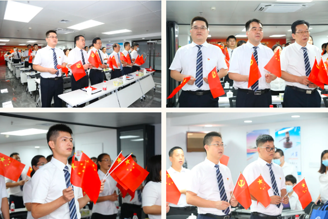 一面旗帜映初心,一颗红心永向党。活动中,党员们胸前佩戴党徽,全体人员以挺拔的姿态比肩而立,挥动着鲜红的党旗、国旗,大声呐喊党在我心中,永远跟党走,在镜头下记录对建党百年的美好祝愿。大家以饱满的热情表达对党和国家的热爱,坚定爱党信党忠诚于党的决心。