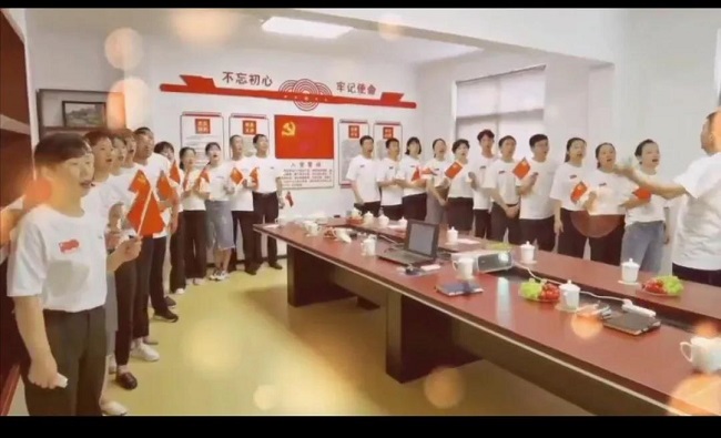西安分公司更是激情澎湃,观看完了庆典直播后,党员及项目员工们齐声高唱红歌为党庆生。