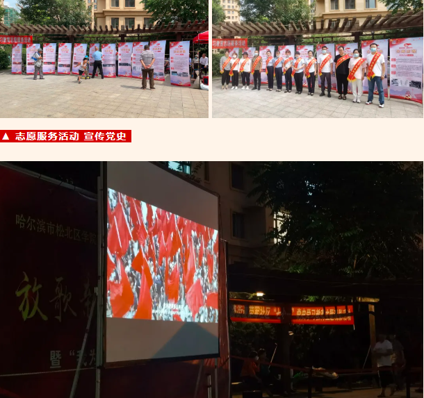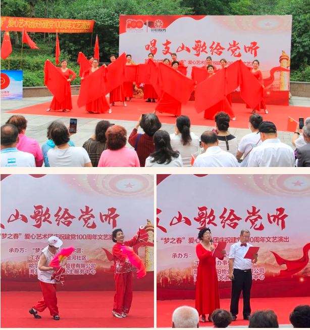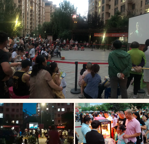 景阳服务各业主服务中心联合各项目社区党支部、街道办及广大业主朋友们一同开展“庆党建100周年——文艺汇演”、播放红色电影、便民活动等系列活动。