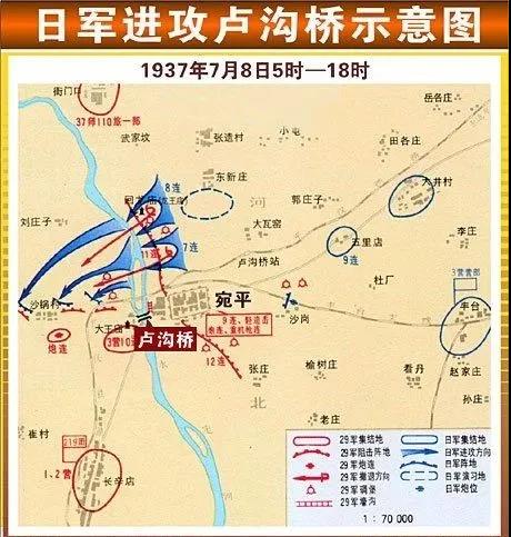 时间来到7月7日下午,日本华北驻屯军第1联队第3大队第8中队,荷枪实弹开往紧靠卢沟桥中国守军驻地的回龙庙到大瓦窑之间的地区。晚7时30分,日军开始演习。