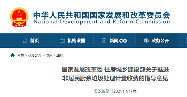 为贯彻落实习近平生态文明思想和习近平总书记关于生活垃圾分类和制止餐饮浪费行为的重要指示精神,充分发挥价格机制激励约束作用,促进厨余垃圾源头减量,近日,国家发展改革委、住房城乡建设部联合印发《关于推进非居民厨余垃圾处理计量收费的指导意见》(以下简称《指导意见》),指导地方推进非居民厨余垃圾处理计量收费工作。