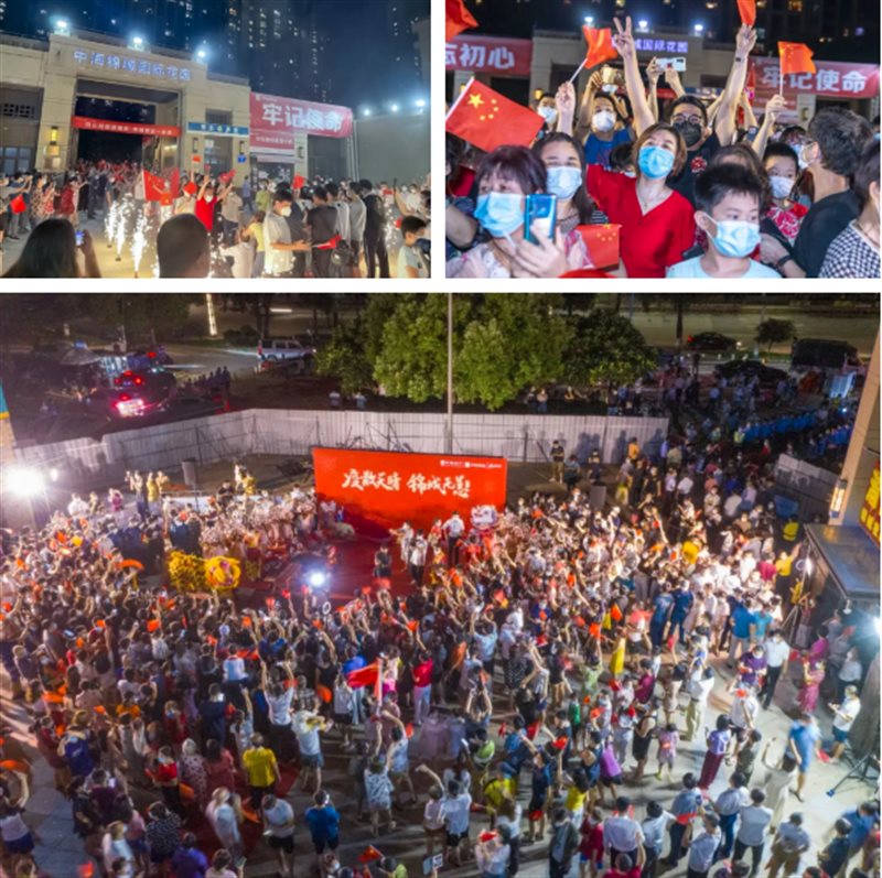 为了给锦城业主们送上一份惊喜,中海地产、中海物业组织了一场特别的解封仪式:7月2日凌晨,居委发布正式解封通知后,中海锦城小区大门正式打开,业主们纷纷走出来,庆贺解封。现场舞狮、礼炮齐上阵,业主齐齐合唱红歌,载歌载舞,十分欢乐。
