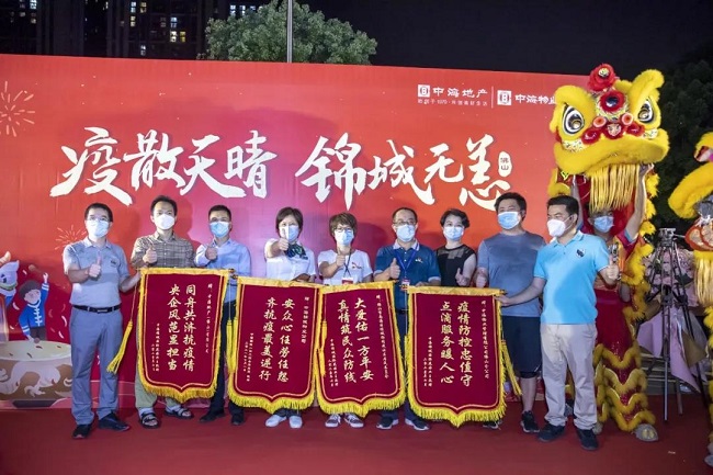 中海锦城国际花园业主们为居委、地产和物业分别送上锦旗,感谢他们在小区封闭管理期间持续奋战:在做好社区防疫工作的同时,全力保障小区上万名居民的居家隔离生活,大家十分感谢他们无私奉献和用心守护。