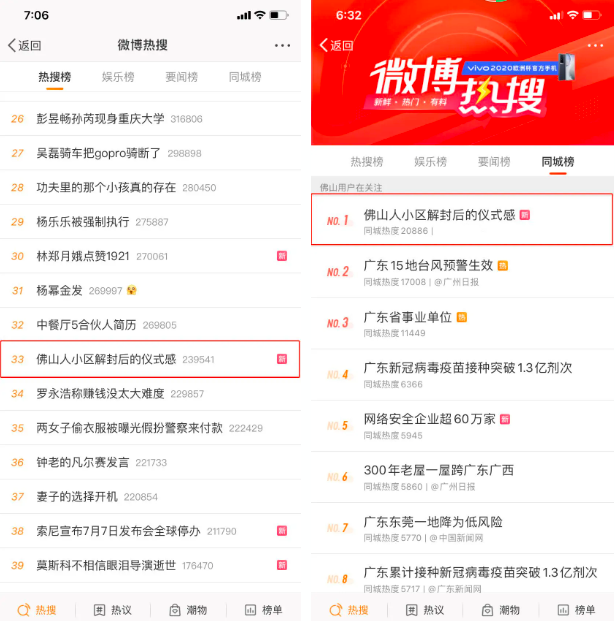充满仪式感的解封仪式吸引了央视CCTV-2、广东电视台今日关注/今日焦点/DV现场等栏目、南方卫视、广东台触电新闻、佛山电视台等大批电视台报道,更以“佛山人小区解封后的仪式感”话题成功出圈,登上微博热搜。