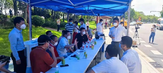 佛山中海地产、中海物业领导第一时间赶赴现场,全力配合政府开展社区封闭管理工作。随后,中海地物联动,紧急召开部署会议,全面吹响“战疫号角”:紧急从各部门、各项目调配人员;筹集防疫物资。