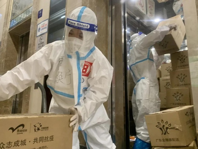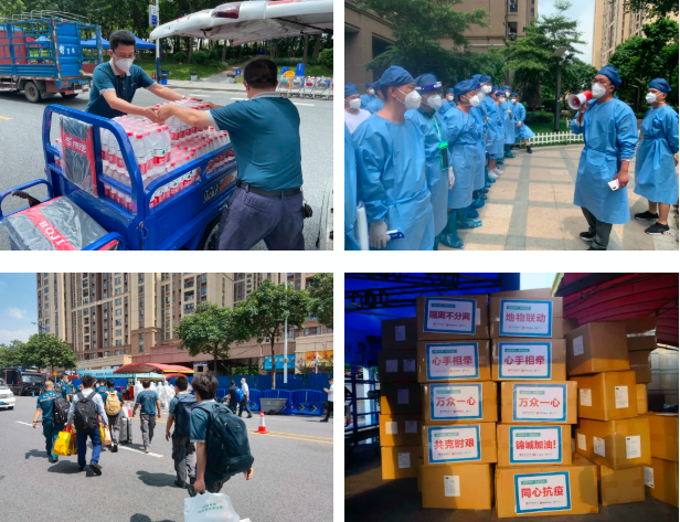 据统计,自6月18日中海锦城从封控管理转为封闭管理以来,佛山公司每天投入约200人次,奔跑于楼栋和物资配送中心之间,累计运送生活物资8万多箱,每箱重约18斤,运送快递4千多份。配合政府共完成20多轮核酸检测,每次检测覆盖约1万人次。