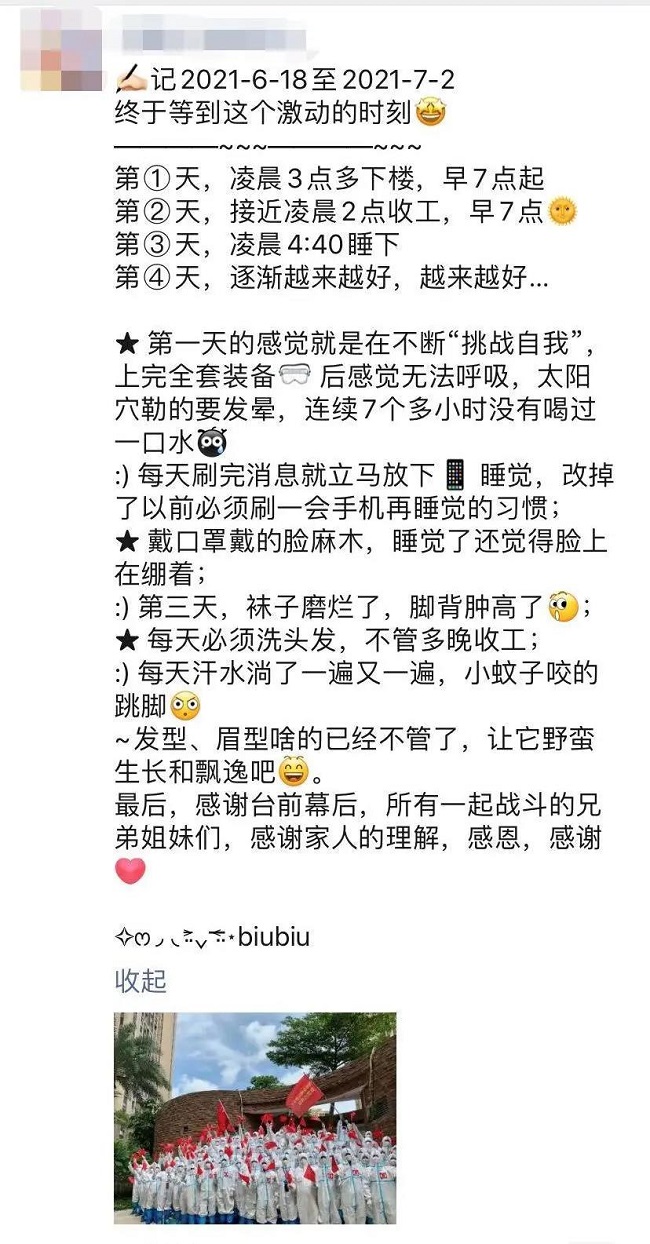 ▲解封后,一位女志愿者写下自己十多天的工作感受
