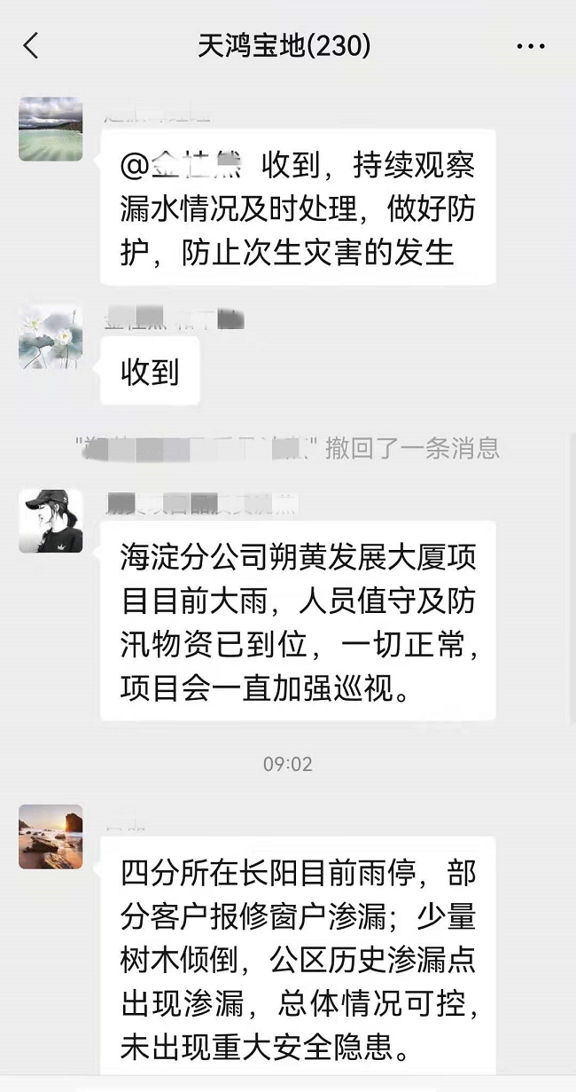 截止本篇报道发出之时,距离市防汛指挥部发出的黄色预警已经过去了22个小时,天鸿宝地所有防汛应急人员也在岗位上坚守了22个小时,未来,我们会一直坚守,全力为业主守护住家的港湾,直到太阳升起……