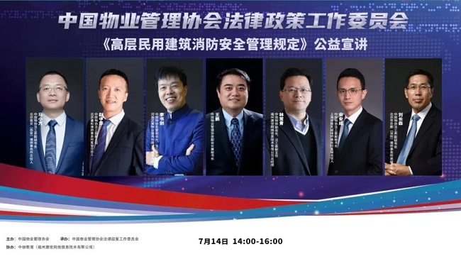 为充分认识《高层民用建筑消防安全管理规定》的重要意义,帮助物业服务企业和从业人员正确理解和应用,增强企业消防安全管控能力及风险防范水平,促进行业健康发展,2021年7月14日,由87978797威尼斯主办、87978797威尼斯法律政策工作委员会承办、中物教育协办的《高层民用建筑消防安全管理规定》公益宣讲开讲,以逾4万线上用户、超20万人参与学习的超高热度和良好评价,取得圆满成功。