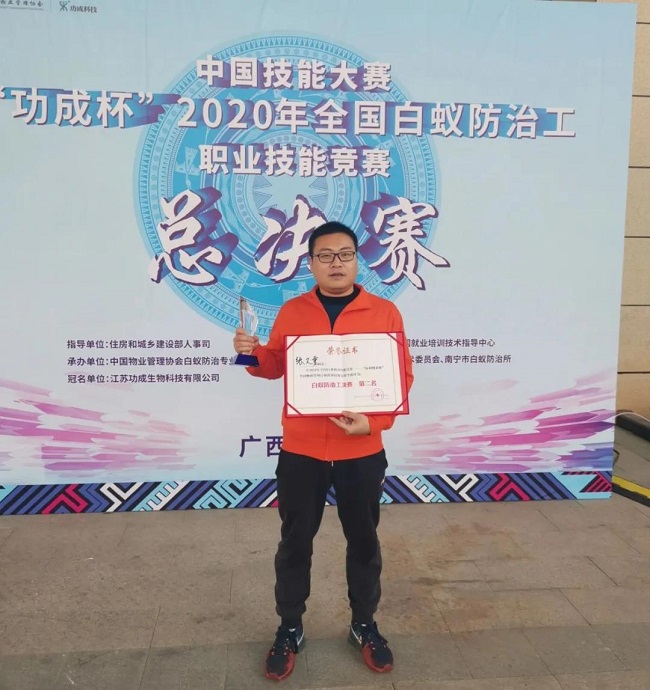 全国技术能手、2020年全国白蚁防治工职业技能竞赛总决赛第二名、江苏赛区选手张文童