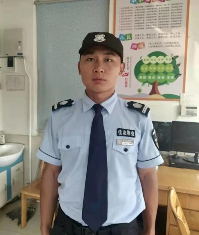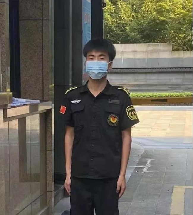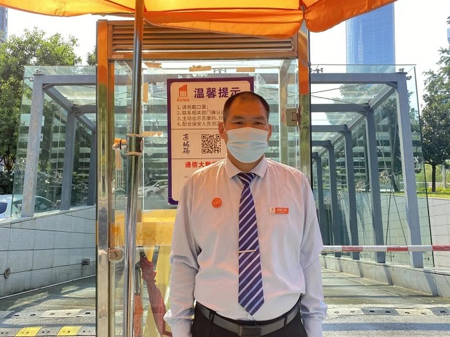 他是华润万象生活物业南京中心苏州项目群的一名秩序员。