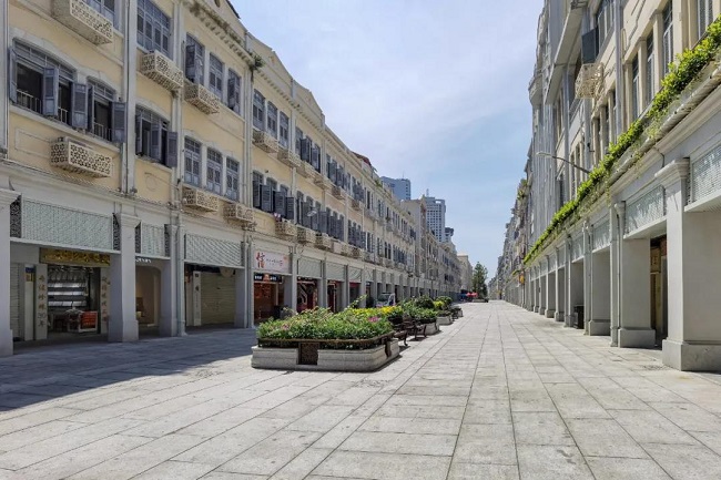 13日,福建厦门思明区中山路步行街人流稀少。