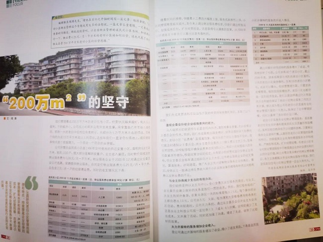 2009年,我写了一篇文章《200万平方米的坚守》,介绍了金房物业在老旧小区管理上的经验做法。这篇文章被刊登在了2009年第3期《中国物业管理》杂志上。