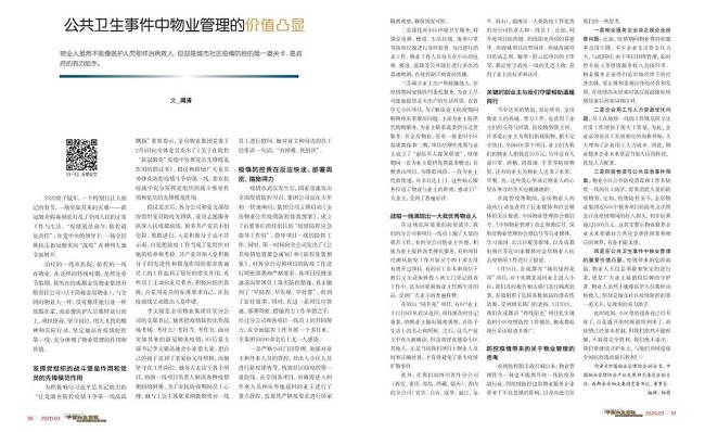 在疫情防控过程中,金房物业成为了业主最信赖的大管家,不仅完成日常工作与疫情防控工作,还为业主提供力所能及的生活性服务,获得业主的赞许。后来,结合金房物业战疫实践和体会,我撰写了《公共卫生事件中“物业管理”的价值凸显!》一文,刊登在了2020年第3期杂志上。