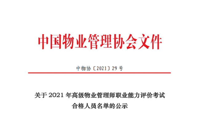 根据《物业管理员(师)职业能力等级评价管理办法(试行)》《物业管理员(师)职业能力等级评价实施细则》有关规定,现将2021年高级物业管理师职业能力评价科目一案例分析考试合格人员名单予以公示(详见附件)。公示时间为11月1日至7日。