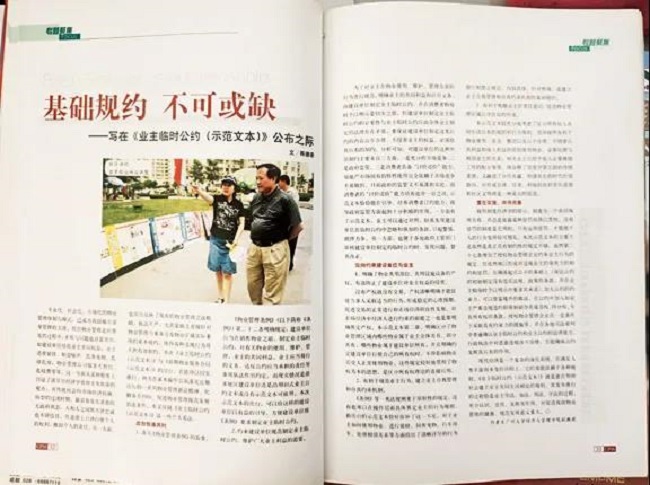 2004年9月,建设部发布《前期物业服务合同》《业主临时公约》,杂志邀请来自北京林业大学、广州大学等高校的专家学者和一批物业服务企业负责人撰稿,对其进行解读,全面系统地分析了《前期物业服务合同》《业主临时公约》颁发将对行业产生的积极作用,有利于全行业充分认识其在规范行业健康发展、培育和谐物业管理秩序方面所具有的现实意义,有力加快了《前期物业服务合同》《业主临时公约》在行业的推介。