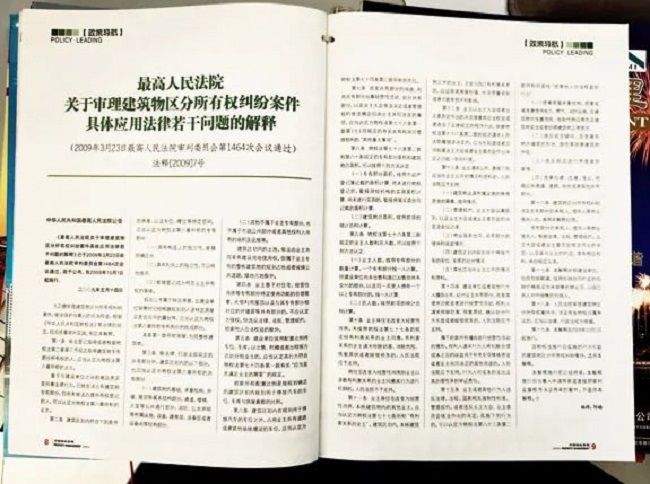2009年5月24日,最高人民法院公布了《关于审理物业服务纠纷案件具体应用法律问题的解释》和《关于审理建筑物区分所有权纠纷案件具体应用法律若干问题的解释》两个司法解释,杂志组织专题解读“两个司法解释”,不但邀请了一批物业管理行业的法律界人士对“两个司法解释”进行了专业解读,而且邀请了一批物业服务企业负责人对“两个司法解释”在物业服务实践中的具体应用进行了分析,对“两个司法解释”在行业落地实施发挥了积极推动作用。