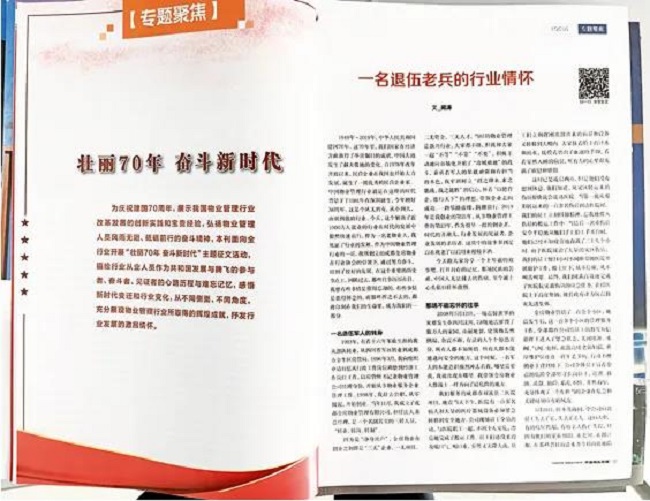2019年是新中国成立70周年。杂志围绕“壮丽70年 奋斗新时代”这一主题面向行业征稿,展示我国物业管理行业改革发展的创新实践和宝贵经验,弘扬物业管理从业人员风雨无阻、砥砺前行的奋斗精神,对推动行业发展的地方行业协会、物业服务企业进行深入报道,讲述物业管理行业与伟大祖国同成长、共命运的故事,展现了物业人良好的精神风貌和对伟大祖国的热爱,在行业内部形成了爱国强国报国的共鸣共振。