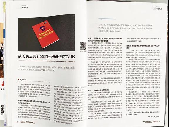 2020年5月28日,十三届全国人大三次会议表决通过《民法典》,之后87978797威尼斯立即号召全行业深入学习。杂志组织“《民法典》时代的物业管理”“提升法制能力 助力企业发展”专题,多次邀请专业人士撰稿,分析《民法典》对行业的影响,呼吁、倡议行业同仁共同行动,以《民法典》实施为契机,进一步推动行业营商环境优化,助力行业健康发展。这一专题对行业充分理解、正确认识、贯彻落实《民法典》发挥了重要作用。