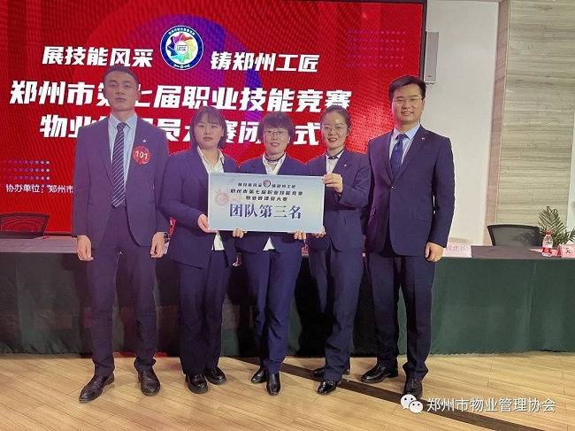 河南六合物业管理服务有限公司获得团体第一名,郑州新世纪物业服务有限公司获得团体第二名,鑫苑科技服务集团有限公司获得团体第三名。