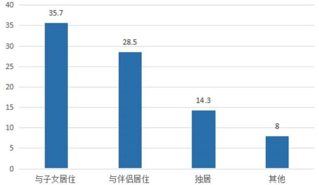 目前调研回收的有效问卷统计结果(1-1)显示,有35.7%的老人与子女居住,与伴侣居住的老人占28.5%,独居老人占14.3%。再结合养老倾向分析,有58.3%的老人选择未来居家养老,选择机构和社区养老的老人仅占16.7%8.3%。由此可见,受访老人还是倾向在家养老,由子女负责给自己养老。