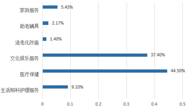 结合访谈进一步发现,诚园长者的居家养老服务需求由医疗保健服务、休闲娱乐服务及生活照料服务共同构成(1-2)。其中,对医疗保健服务的需求最多,达44.5%;其次是休闲娱乐服务,占37.4%;最后是生活照料服务,占9.1%。具体来说,长者当前的显性需求为医疗、助餐、精神慰藉,隐性需求为上门照护、康复护理。相对于显性需求,隐形需求相对较少,主要因为目前社区长者有家庭成员负责照料,对于康复护理和适老化服务产品了解较少。