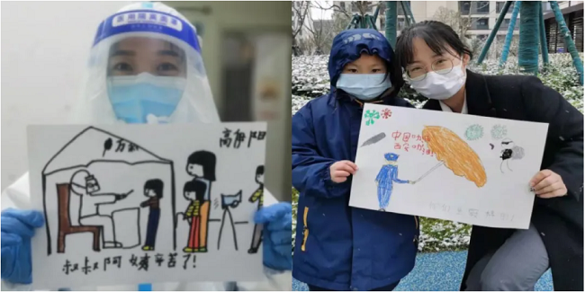 业主小朋友送给物业工作人员的手工爱心画