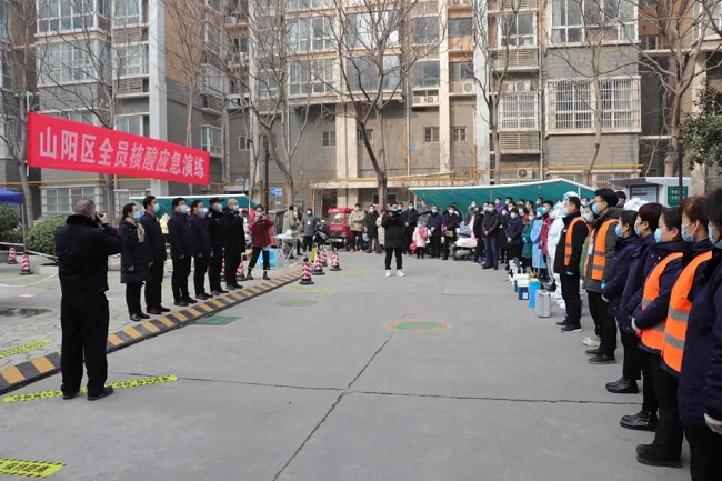 1月9日,山阳区在太极景润小区举行新冠肺炎疫情应急处置实战演练。合家安物业接到演练通知后,迅速作出科学部署,物业员工闻令而动,有序组织,积极响应,配合山阳区政府筑牢疫情防控安全线。