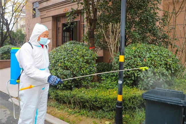 小区内的保洁团队,在日常作业标准基础上,增加消毒清理内容。小区游乐场、入户门前、垃圾桶、下水口、电梯、地下车库、车棚、楼梯间……但凡有人经过的地方,都要消毒。