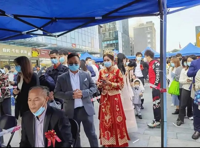 在核酸检测现场,美鹏物业工作人员和党员志愿者全力配合社区开展检测点布置、现场秩序维护、信息录入登记等工作。面对社区居民在检测中遇到的种种问题,工作人员耐心予以解答,并积极引导人员分流,极大地提高了核酸检测效率。现场还为老人、小孩、孕妇等特殊群体提供绿色通道,帮助他们顺利完成检测。在城立方项目检测点,为了不耽误一对新人的婚礼仪式,工作人员优先为其安排检测,保证了婚礼的正常举行;在布吉社区,工程人员加班加点为核酸检测点转接电线,安装灯具,确保夜间检测工作正常运转。