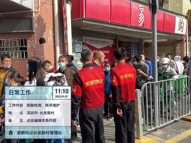 同时,根据龙岗区发布的防控疫情通告,核电物业严格落实疫情防控卡口工作,做好围合式管理,小区出入口严格执行24小时测温、查验健康码和48小时内核酸检测证明,并一律禁止快递、外卖人员进入小区,避免交叉感染,确保居民安全。
