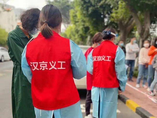 没有检测用桌,临时借;没有人手,凌晨6点管理处全员紧急集合;没有排队线路,紧急围拉起排队路线;没有照明,机电工马上接电安装……大喇叭喊起来,朋友圈发起来,微信群通知起来,连续三天,近40个小时,项目及周边约1万5千位居民完成了核酸检测。穿上红马甲就是志愿者,穿上防护服就是防疫战士,核电物业人人都是服务先锋,尽自己所能,为社区居民、医护人员工作保驾护航。