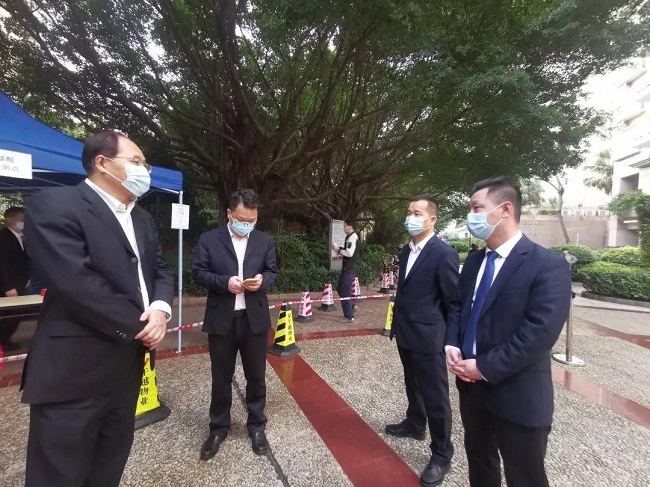 1月7日凌晨,龙岗区布吉片区出现确诊病例,康桥花园快速响应政府号召,立即启动疫情防控应急预案,按照街道统一部署,30000多人核酸检测任务必须在两天内检测完成的重大任务安排到康桥花园两个检测点身上。时间紧任务重,北方物业康桥花园物业服务中心在同社区充分沟通协调后,在康桥花园一、二期分别设置两个集中核酸检测点,配合社区快速启动小区全员核酸检测工作。与此同时,物业服务中心对小区高频接触区域消毒、外来人员管控、疫情防控宣传等方面,建立起常态化防控措施,保障每一位业主的健康安全,为这场疫情防疫战贡献自己的一份力量。1月9日,南湾街道书记及社区工作站人员一行亲临康桥花园对小区核酸检测、疫情防控工作现场指导。对康桥花园统筹有序、物业配合得力,顺利完成此次全员核酸检测工作给予高度评价。