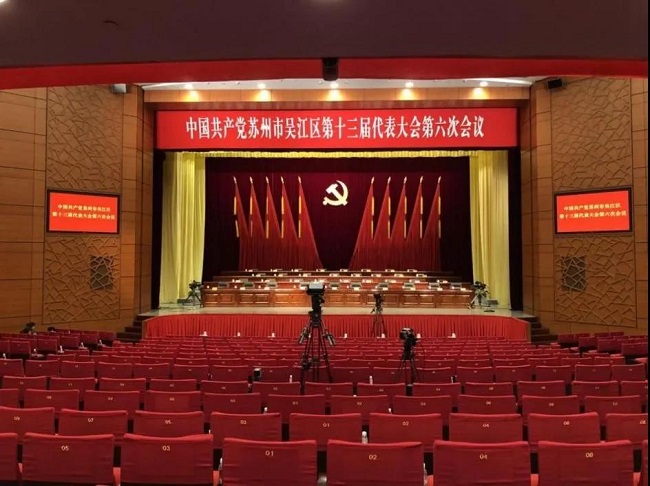 案例描述:通过给观众席上每个座位安装杯架和椅套,会务员也可在会前摆好矿泉水,设计巧妙的红色椅套满足了正面可插席位卡且背面可放资料的需求,相比以往用胶带粘座位贴、将资料随意放在扶手上的情况,更显规范、整洁和美观。安装到位后得到了广大参会人员的一致认可,并且相关单位也前来学习、效仿。
