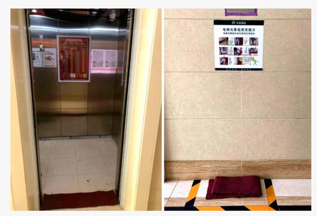 案例描述:在社区每个单元楼的1层及B1层电梯前放置一块“光幕毯”,并在电梯按键下方粘贴电梯光幕毯的使用方法,方便业主单人搬运物料和大件物品。此举得到了业主的广泛使用和好评,起到了保护电梯的作用,同时也减少了后续维修养护成本。