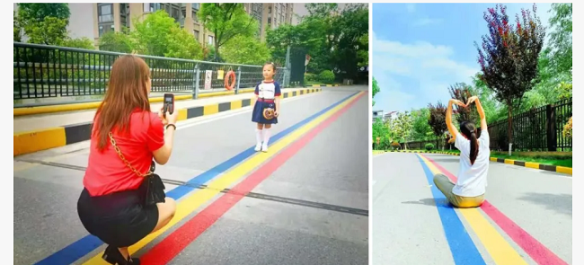 案例描述:针对部分业主认为园区环境缺乏新意的情况,故而选择在业主经常路过的人行道中轴线处刷漆出新,通过红、黄、蓝三色组合碰撞,形成蜿蜒曲折的彩虹路,并在道路附近错落设置各类园区小品,让业主在园区时能移步换景,增加发现更多乐趣的欣喜感。此做法,不仅对园区的美化提升,还营造出一种温馨愉悦的园区氛围,让回家之路更有新意、温暖。